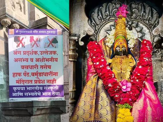 मग मंदिराच्या गाभाऱ्यात दर्शनासाठी जाताना तुळजाभवानी मंदिर परिसरात असभ्य कपडे घालण्यास बंदी करण्यात आली आहे. असभ्य आणि अशोभनीय वस्त्र धारण करून येणाऱ्यांना मंदिरात प्रवेश नाही, असे फलक आजपासून मंदिरात लावण्यात आले आहेत. भारतीय संस्कृती आणि सभ्यतेचे भान ठेवा, असा सल्ला देखील फलकावरून देण्यात आला आहे.