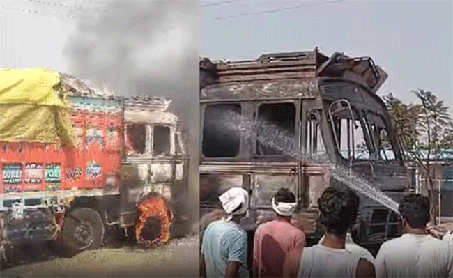 जळगाव : राज्यभरात सूर्य आग ओकत असून उन्हाचा तीव्र तडाखा बसत आहे. काही भागांमध्ये पावसाच्या सरी बरसत असल्या तरी उन्हाची समस्या कायम आहे. मराठवाड्यासह विदर्भात तर तापमानात प्रचंड वाढ झाल्याने पाणीटंचाईची समस्याही भेडसावत आहे. धुळे, जळगावमध्ये उष्णतेचा कहर पाहायला मिळत आहे. या जिल्ह्यांत तापमान ४४ अंश सेल्सियसवर पोहोचले आहे. यामुळेच जळगावमध्ये उन्हाच्या तडाख्याने एका ट्रकला आग लागल्याची धक्कादायक घटना घडली.