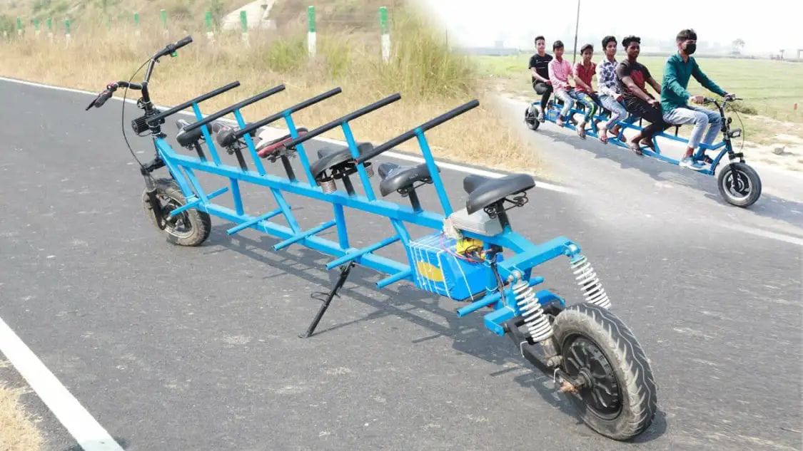 ही इलेक्ट्रिक बाईक लोखंडी पाईपच्या मदतीने बनवण्यात आली आहे. हा पाइप सुमारे 8 ते 10 फूट लांब आहे. या पाईपचा वापर करून मुलाने बाईकची फ्रेम तयार केली आहे. फ्रेमच्या खाली एक फूटरेस्ट ठेवलेला आहे. प्रत्येक प्रवासी सीटसाठी एक हँडलही बसवण्यात आले आहे.