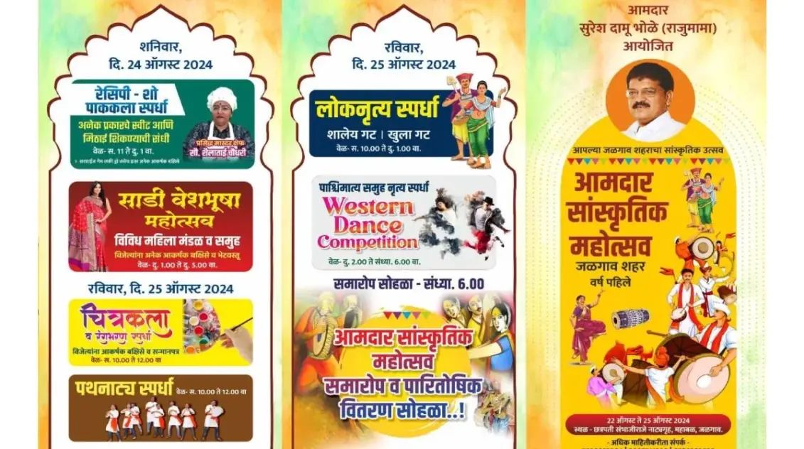 महोत्सवात गुरुवारी दि. २२ ऑगस्ट रोजी पहिल्या दिवशी सकाळी १०. ३० वाजता उदघाटन मान्यवरांच्या हस्ते केले जाणार आहे. त्यानंतर महोत्सवाला सुरुवात होईल. पहिले रांगोळी व मेहंदी स्पर्धाचे आयोजन करण्यात आले आहे. त्यानंतर शालेय व खुला गटात समूह गायन स्पर्धा ११ वाजता सुरु होईल. दुपारी १ वाजता एकल नृत्य स्पर्धा तर दुपारी ३ वाजता महिला भजनी मंडळाचा गायन महोत्सव होणार आहे. एकंदर या स्पर्धेत कलाकारांना त्यांची कला सादर करण्यास मोठी संधी उपलब्ध झाली आहे. स्पर्धेचे समन्वयन सचिन महाजन, दिपक महाजन, पंकज बारी हे करीत आहे. जळगावकर रसिकांनी महोत्सवात सहभागी होऊन कलाकारांचा उत्साह वाढवावा असे आवाहन आयोजक आ. सुरेश भोळे तथा राजूमामा व भरारी फाउंडेशनचे संस्थापक अध्यक्ष दीपक परदेशी यांनी केले आहे.