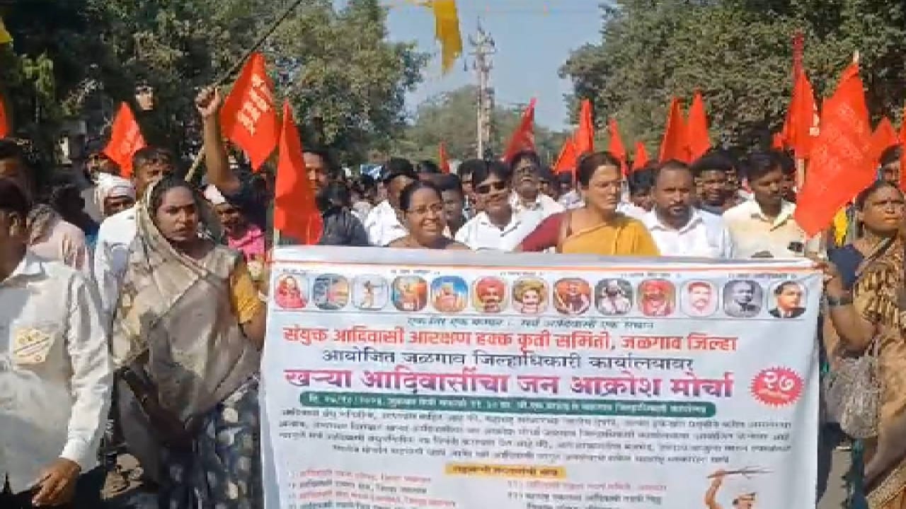 जळगाव – येथील आदिवासी तडवी भिल्ल समाज आणि संयुक्त आदिवासी आरक्षण हक्क कृती समिती जळगाव यांच्यातर्फे आज दुपारी जीएस मैदानावरून मोठ्या संख्येने आदिवासी समाज बांधवांनी एकत्र येऊन जिल्हाधिकारी कार्यालयावर मोर्चा काढला. यावेळी विविध घोषणांनी जिल्हाधिकारी कार्यालय दणाणून गेले होते. आदिवासी समाजाच्या न्याय हक्कासाठी आणि अन्य मार्गांसाठी आज 27 रोजी भव्य मोर्चा काढण्यात आला होता.