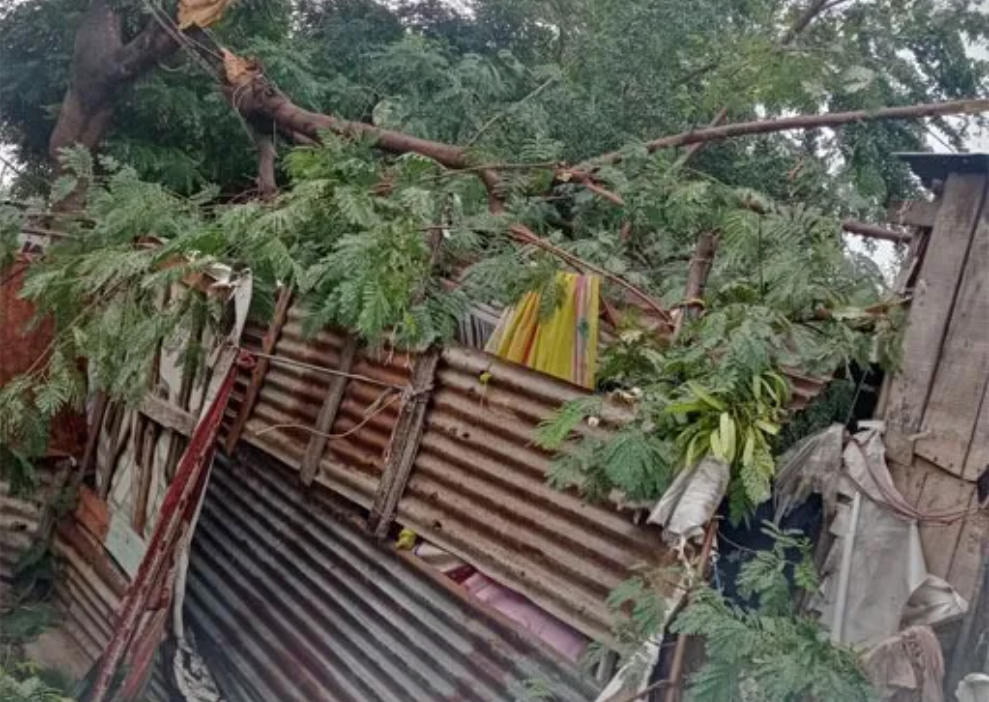 झाड कोसळल्याने संजय निकुंभ यांच्या घराचा सरा तुटून पत्रे व दगडगोटे घरावर पडून त्यांच्या संपूर्ण घराचे अतोनात नुकसान झाले आहे. पुढील खोलीत बसलेले संजय निकुंभ यांचे वडील थोडक्यात बचावले आहे. झाड कोसळल्यानंतर निकुंभ यांच्या परिवाराला आजूबाजूच्या राहिवाशांनी तातडीने मदत करुन सहकार्य केले. तसेच त्यांच्या तात्पुरत्या निवाऱ्याची सोय केली आहे.