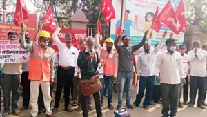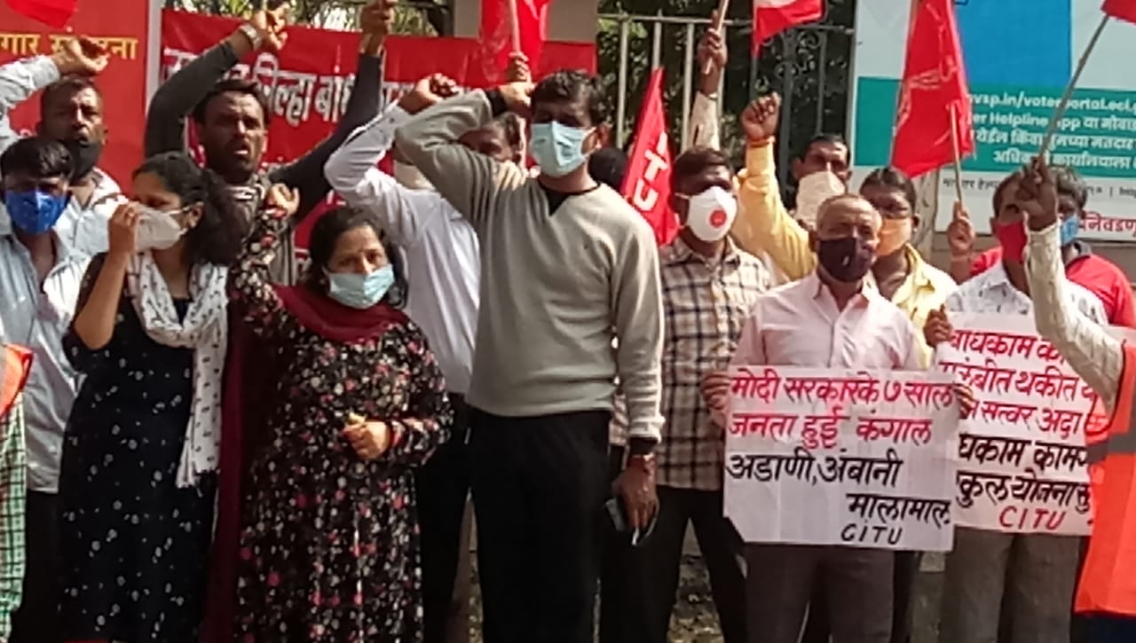 जळगाव -शहर आणि जिल्ह्यातील बांधकाम कामगारांच्या विविध मागण्यांसाठी आज जिल्हाधिकारी कार्यालयासमोर भाकपप्रणीत सिटू संघटनेच्या नेतृत्वाखाली निदर्शने करण्यात आली . आज बांधकाम कामगारांच्या देशव्यापी संपाचा दुसरा दिवस आहे . आंदोलनकर्त्यांनी केंद्र आणि राज्य सरकारकडून होत असलेल्या दुर्लक्षाबद्दल संताप व्यक्त केला . जिल्हाधिकाऱ्यांना निवेदन देण्यात आले .