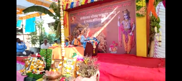 जळगाव -:येथील कांचन नगरात जागृत श्री गुरुदत्त मंदिर संस्थान मार्फत दत्त जयंती निमित्त श्रीपद भागवत संगीतमय कथा व कीर्तनी सप्ताहाची सुरुवात मंदिराचे विश्वस्त राजेंद्र कोळी, सौ. अरुणा कोळी यांच्या हस्ते करण्यात आली. श्रीमद भागवत कथाचे निरुपन ह.भ.प.श्री. मनोहर महाराज खोडे करीत आहेत.