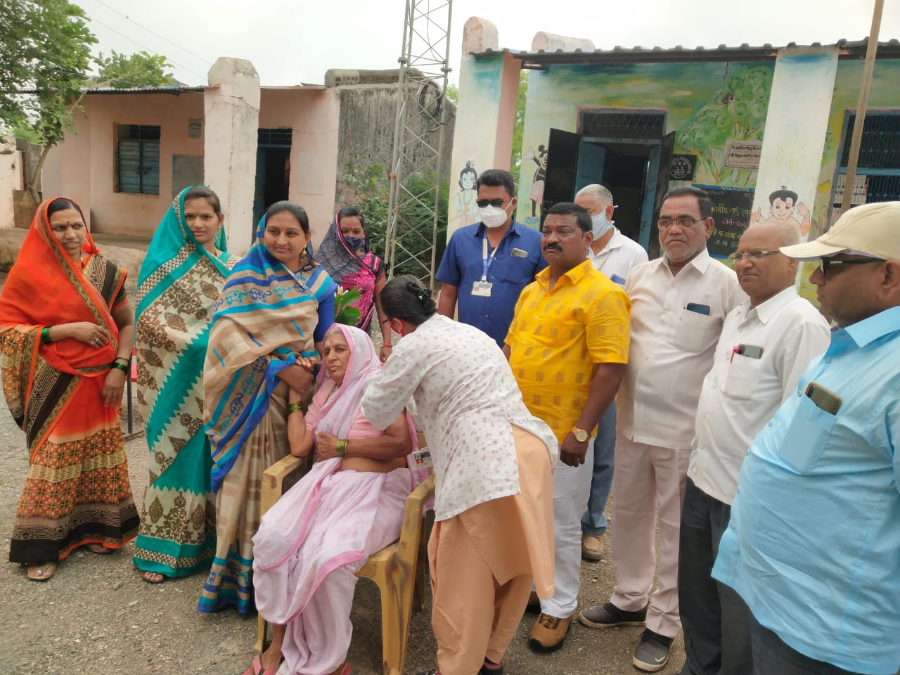 धानोरा -जळगाव तालुक्यातील धानोरा खुर्द येथील जिल्हा परिषद केंद्र येथे 297 लसीचे डोस देण्यात आले. याप्रसंगी वैद्यकीय अधिकारी युवराज सोनवणे. तथा वैद्यकीय अधिकारी कर्मचारी , जळगाव पंचायत समिती चे सभापती सौ ललिता जनार्दन कोळी यांनी नागरिकांना लसीकरणाबाबत माहिती दिली. तथा नागरिकांना लस घेण्यासाठी आवाहन केले. या प्रसंगी जनार्धन भाऊलाल कोळी ,धानोरा गावाचे लोकनियुक्त सरपंच सौ भारती देवेंद्र पाटील , सरपंच पती देवेंद्र रमेश पाटील, जेडीसीसी बँक शाखेचे व्यवस्थापक रमेश पाटील, अर्जुन पाटील- पोलीस पाटील धानोरा, रवी महाजन ग्राम सेवक ग्रुप ग्रामपंचायत धानोरा,आदी मान्यवर उपस्थित होते. लस उपलब्ध करून दिल्याबद्दल ग्रामस्थांनी सरपंच आणि मान्यवरांचे आभार व्यक्त केले. आणि गावामध्ये शिस्तीने लसीकरण पार पडले यात गावातील नागरीकांचे सहकार्य लाभून गोंधळ किंवा कुठलीही तक्रार न आल्याने, जवळ जवळ 80% धानोरा गावाचे लसीकरण झालेले एकमेव गाव असल्याने सरपंच भारतीताई पाटील यांनी गावातील लोकांचे आभार मानून कृतज्ञता व्यक्त केले.