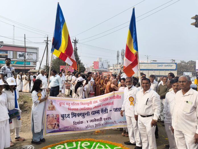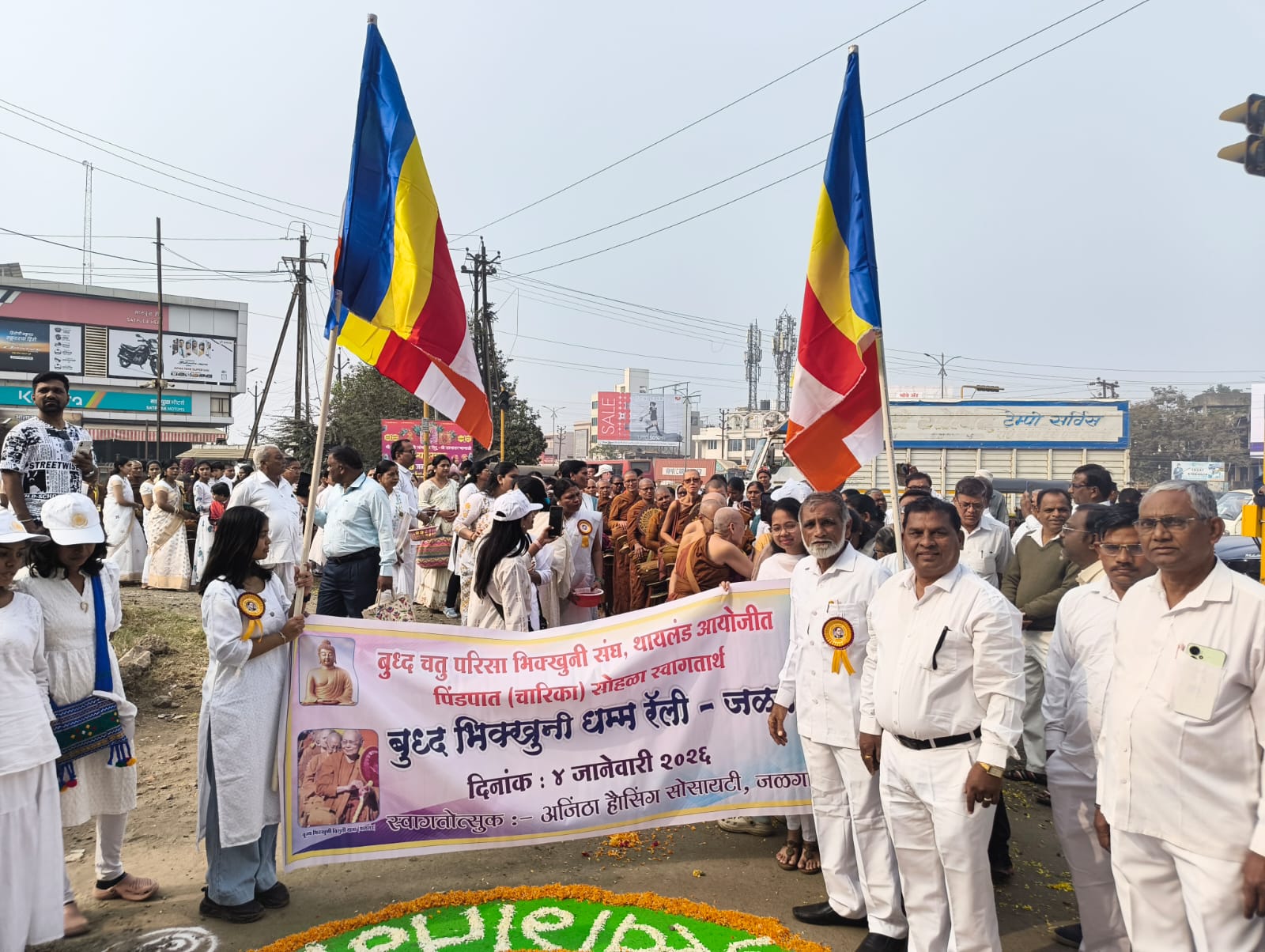 जळगाव :- आज जगात माणसा माणसात प्रचंड राग , द्वेष , मोह वाढलेला. आहे , माणसा माणसात संघर्ष वाढत आहे , या संघर्षातून विनाश घडत आहे अश्या प्रसंगी प्रत्येक माणसाला माणूस म्हणून सुखाने , शांततेने , निर्भयतेने जगता येण्या करिता भगवान गौतम बुद्ध यांनी दिलेल्या मैत्री , करुणा या तत्त्वांचा अंगीकार करणे गरजेचे आहे असे प्रतिपादन बुद्ध चतु परीसा भिक्खुनी संघ , थायलंड च्या प्रमुख पूज्य भिक्खुनी विसुत्ती याना यांनी केले .