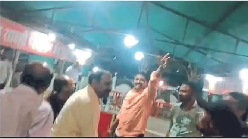मात्र, याच कार्यक्रमात एक जण येतो आणि हलगीच्या तालावर नाचणाऱ्या पोलिसांच्या अंगावर दारुच्या ग्लासातून पेगवर पेग ओतून नृत्य करतो. अन्य एक जण नोटांचे बंडलही काढतो. विशेष म्हणजे, जवळच लावलेल्या टेबलवर दारुच्या बाटल्या स्पष्टपणे दिसताय आणि हॉटेल पुर्ण ताब्यात असल्याने वेटर, पार्टीत आमंत्रितांव्यतिरीक्त कोणीच नसल्याचे दिसत आहे.