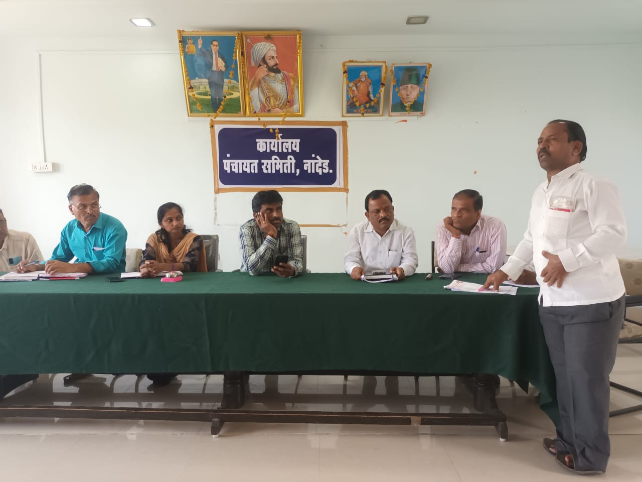 नांदेड पंचायत समिती सभागृह येधे दिव्यांग वृध्ध निराधार मित्र मंडळ महाराष्ट संस्थापक अध्यक्ष चंपतराव डाकोरे पाटिल, गटविकास अधिकारी,विस्तार अधिकारी ,ग्रामविकास अधिकारी यांच्या ऊपस्थित बैठक संपन्न झाली.