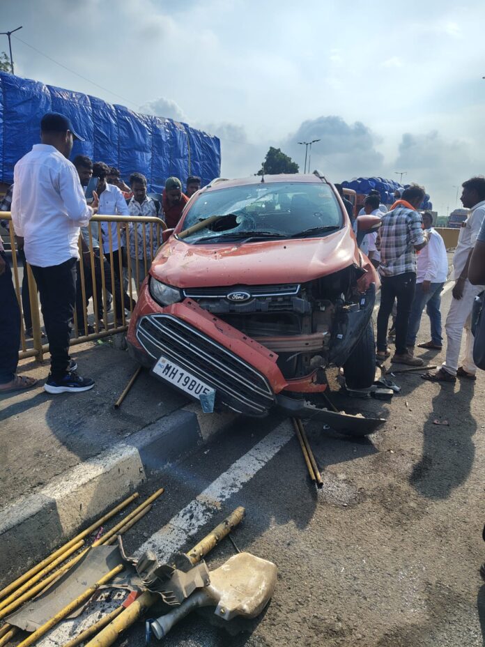 भुसावळ – जळगाव कडून मुक्ताईनगर कडे फोर्ड कंपनीच्या कार क्र. एम एच १९ बी यू ५११५ ने तिघे जण जळगाव कडून मुक्ताईनगर कडे जात असताना काँर्नर वर कार ने लोखंडी पिंजऱ्याला धडक दिली त्यामुळे कार मधील दोन पुरुष व एक महिला असे तिघे जण किरकोळ जखमी झाल्याचे समजते. घटनास्थळी ताबडतोब नशिराबाद येथील युवक व नागरीकांनी धाव घेऊन सहकार्य केल्याचे सांगितले आहे.