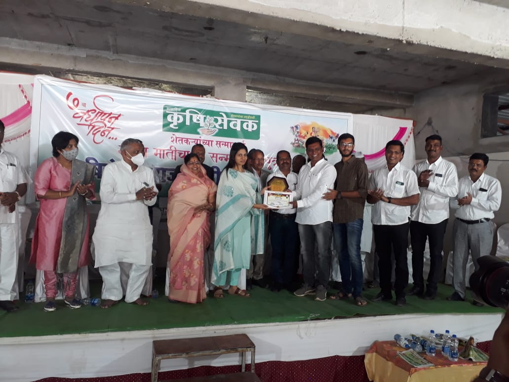 रावेर प्रतिनिधी–राजेंद्र महाले –-रावेर तालुक्यातील निंभोरा येथील स्वानंद कृषी विज्ञान मंडळाचे सदस्य तथा प्रगतिशील शेतकरी रविंद्र वसंत भोगे यांना खा. रक्षाताई खडसे यांच्या हस्ते साप्ताहिक कृषीसेवक चा राज्यस्तरीय “युवा शेतकरी पुरस्कार” प्रदान करण्यात आला.यावेळी कार्यक्रमास जि.प.अध्यक्षा ना.रंजनाताई पाटील, माजी आ.अरुण दादा पाटील,तहसीलदार उषाराणी देवगुणे,जैन इरिगेशन जळगावचे उपाध्यक्ष तथा केळीतज्ञ डॉ.श्री.के बी पाटील,राष्ट्रवादी किसान सभेचे जिल्हाध्यक्ष सोपान पाटील, भाजपा जिल्हा उपाध्यक्ष पद्माकर महाजन,भाजपा युवा मोर्चा चे जिल्हाध्यक्ष श्रीकांत महाजन,कामगार नेते दिलीप कांबळे यांच्यासह अन्य मान्यवरांच्या उपस्थितीत साप्ताहिक कृषीसेवक चा राज्यस्तरीय “युवा शेतकरी पुरस्कार” रावेर येथे प्रदान करण्यात आला. याबद्दल त्यांचे गुणवंत भंगाळे,सुनील कोंडे,सुधीर मोरे,गिरीश नेहेते,मोहन भंगाळे,हेमंत भंगाळे,राजीव भोगे,विनोद बोंडे,ग्रा पं सदस्य दिलशाद शेख,दिलीप सोनवणे आदींनी अभिनंदन केले.