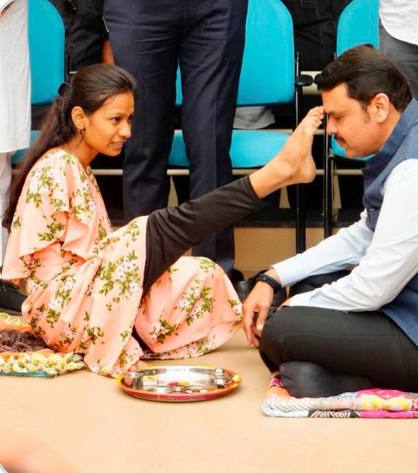 जळगाव – ‘आजवर कितीतरी माता-भगिनींनी मला ओवाळलं. कपाळावर आशीर्वादाचा गंध लावला. आजही त्याच भावनेनं अंगठा कपाळाला टेकला पण तो पायाचा… हाताचा नव्हे,’ हे उद्गार आहेत, उपमुख्यमंत्री देवेंद्र फडणवीस यांचे.