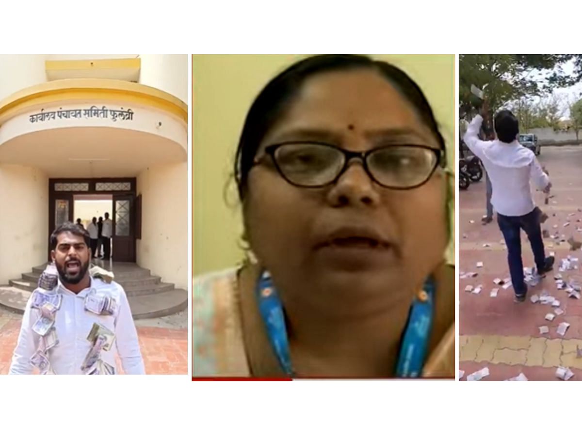 फुलंब्री पंचायत समितीच्या कार्यालयासमोर शेतकऱ्यांची व्यथा मांडण्यासाठी आलेले सरपंच मंगेश साबळे यांनी नोटांची उधळण केली. गेवराई पायगा येथील हे अपक्ष सरपंच आहेत. “मी पैसे वाटून निवडून आलेलो नाही. शेतकऱ्यांचं काम करून देण्यासाठी पैसेही वाटू शकत नाहीत, त्यामुळे आज मी अशा प्रकारे व्यथा मांडतोय”, अशी भावना या सरपंचाने व्यक्त केली.