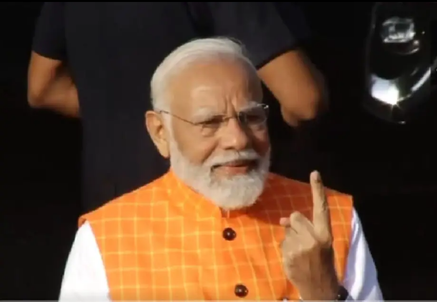 #WATCH | Prime Minister Narendra Modi shows his inked finger after casting his vote at a polling booth in Ahmedabad, Gujarat
