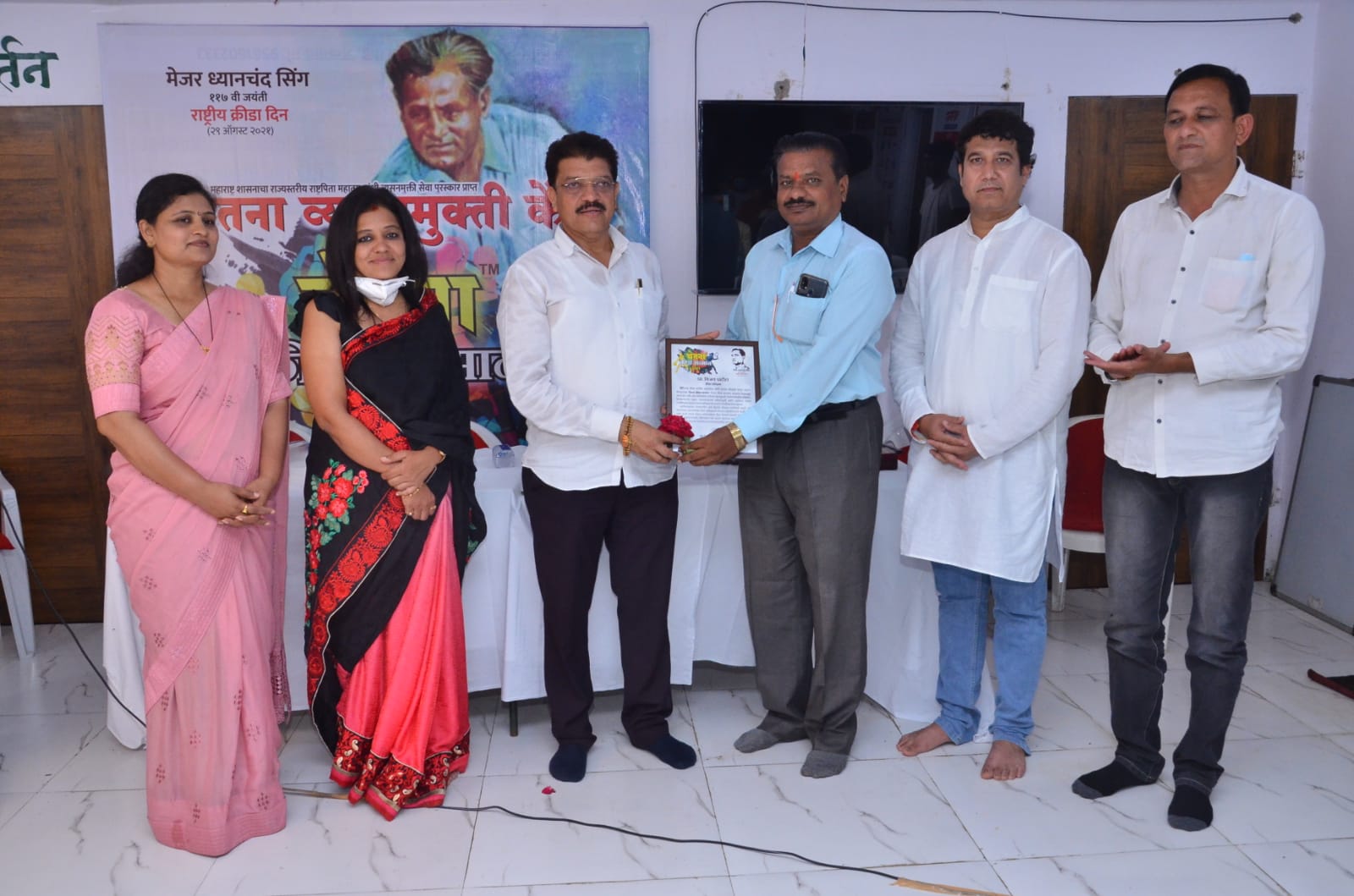 चोपडा : पंकज शैक्षणिक व सामाजिक संस्था संचलित ,पंकज कला व विज्ञान महाविद्यालय येथील क्रीडा संचालक प्रा.डॉ.विजय पाटील यांना क्रीडा क्षेत्रातील विशेष उल्लेखनीय कार्याबद्दल त्यांना हॉकीचे जादूगार व भारताचे महान खेळाडू मेजर ध्यानचंद यांच्या जयंतीनिमित्त आयोजित करण्यात आलेल्या चेतना क्रीडा सन्मान 2021 पुरस्कार देऊन गौरविण्यात आले .