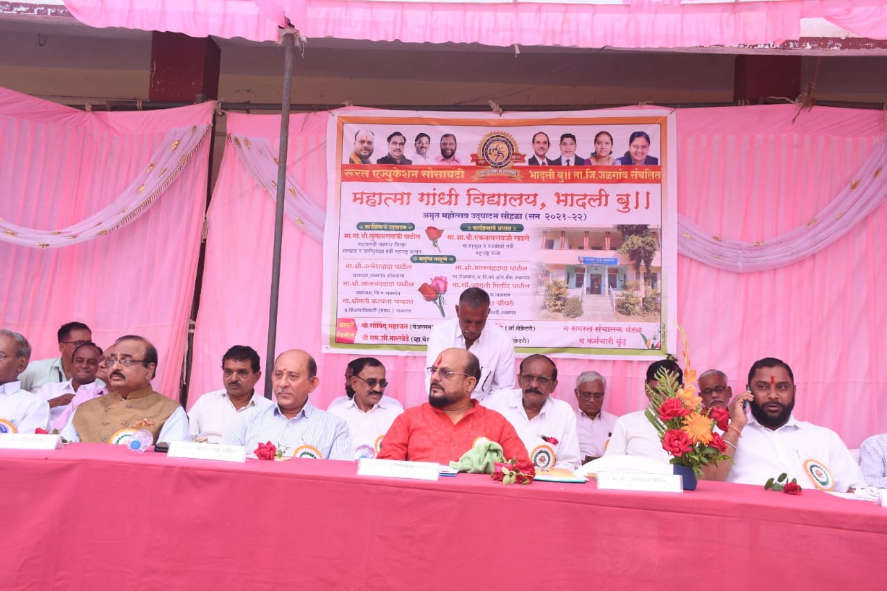 तालुक्यातील भादली येथील रूरल एज्युकेशन सोसायटीच्या अमृत महोत्सवास आज पालकमंत्री ना. गुलाबराव पाटील यांच्याहस्ते प्रारंभ करण्यात आला. या कार्यक्रमाला प्रमुख पाहुणे म्हणून खासदार उन्मेष पाटील, जि.प.चे उपाध्यक्ष लालचंद पाटील, पं. स. सदस्या जागृती चौधरी, सरपंच मिलिंद चौधरी, उपसरपंच अरुण सपकाळे, गटशिक्षण अधिकारी सतीश चौधरी, तुषार महाजन, वि. का. सोसायटी चे चेअरमन किरण रडे, दूध डेअरी चेअरम मनोहर महाजन, छगन खडसे, आबा कोळी, सुभाष महाजन विविध संस्थांचे पदाधिकारी उपस्थित होते.