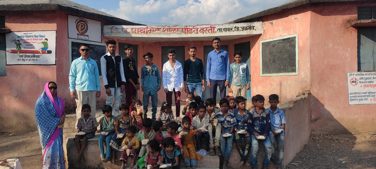 आर टी फाउंडेशनचे अध्यक्ष राहुल तडवी यांच्या जन्म दिनाचे औचित्य साधून गरीब मुलांना फराळाचे वाटप