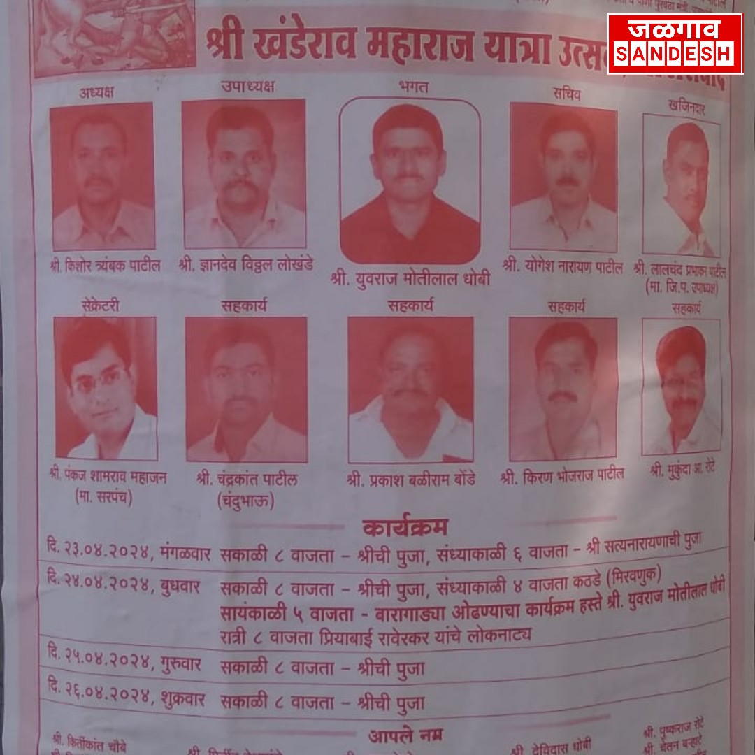 भुसावळ – नशिराबाद ता जळगाव येथे दि.२४ एप्रिल रोजी सायंकाळी ५ वाजता श्री खंडेराव महाराज यात्रा निमित्ताने बारा गाड्या आयोजन करण्यात आले असून भगत युवराज मोतीलाल धोबी हे बारा गाड्या ओढणार आहेत. यात्रा निमित्ताने खेळणी, मिठाई, पाळणे अशी विविध प्रकारची दुकाने या ठिकाणी थाटण्यात येणार आहेत. श्री खंडेराव महाराज यात्रा उत्सव समिती ने चांगल्याप्रकारे नियोजन केले आहे. यात्रा शांततेत पार पाडण्यासाठी यात्रा समितीचे अध्यक्ष किशोर त्र्यंबक पाटील, उपाध्यक्ष ज्ञानदेव विठ्ठल लोखंडे, सचिव योगेश नारायण पाटील, खजिनदार मा जि प उपाध्यक्ष लालचंद पाटील, सेक्रेटरी मा सरपंच पंकज महाजन, सदस चंद्रकांत पाटील, प्रकाश बोंडे, किरण पाटील, मुकूंद रोटे व गावातील पदाधिकारी यांनी शांततेचे आवाहन केले आहे.