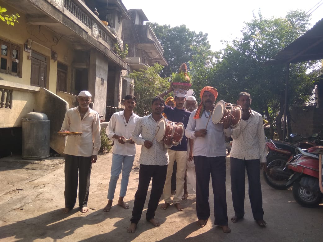 भुसावळ – येथे दरवर्षी नवरात्रीच्या उत्सवात भगत मंडळी आपापल्या देवघरात घटाची स्थापना करतात तसेच नवमीच्या दिवशी गावातून देवकाठी काढण्याची परंपरा आहे मात्र या वर्षी येथील वामन शिवा सावळे धनगर (भगत) यांच्या घरी घटाची स्थापना करण्यात आलेली होती. त्यांनी गावातील सुपडू कंखरे हे चालवित असलेल्या वही गायन मंडळाच्या माध्यमातून गावातून घटाची मिरवणूक काढली. यावेळी वही गायनाच्या माध्यमातून गावातील ठिकठिकाणी असलेल्या देवमढी तसेच श्री हनुमान मंदिर अशा ठिकाणी थांबून वही गायन मंडळाच्या गायक कलावंतांनी आपली कला सादर केली व घटाचे वाघुर नदीच्या पात्रात विसर्जन केले यावेळी वामन धनगर (भगत), संतोष कुंभार (भगत), गायक सुपडू कंखरे, ज्ञानेश्वर खडके, भैय्या कंखरे , अनिल भगत यांचे चिरंजीव अशोक बाविस्कर, समाधान सावळे, शुभम सावळे व सावळे परिवारातील सदस्य उपस्थित होते.