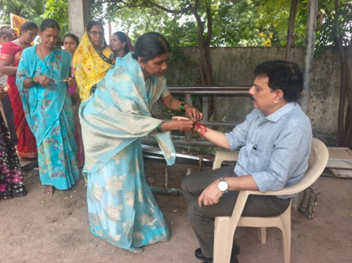 भुसावळ – तालुक्यातील सुनसगाव येथे ना.वस्रोद्योगमंत्री संजयभाऊ सावकारे यांच्या हस्ते नविन पशूवैदकीय दवाखाना बांधकाम कामाचे भूमीपूजन करण्यात आले. यावेळी या कार्यक्रमाला उपस्थित कार्यकर्त्या महिला माजी सभापती मनिषा पाटील , बाजार समिती व विकासो संचालक सुरेखा पाटील , बेलव्हाळ सरपंच मनिषा खाचणे ,सुनसगाव / गोंभी सरपंच काजल कोळी ,सदस्य रत्नप्रभा पाटील , रंजना पाटील, चंचल पाटील, कल्पना भोळे यांनी मंत्री महोदयांना राख्या बांधून रक्षाबंधन साजरे केले यावेळी पदाधिकारी उपस्थित होते.