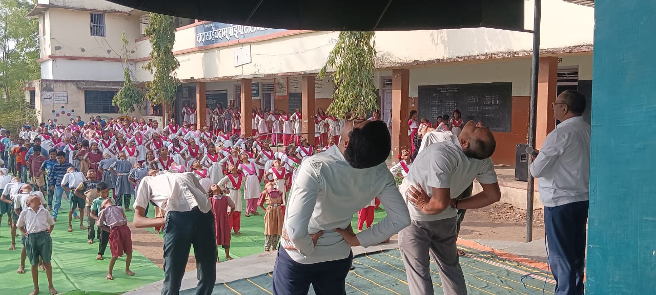 शाळेतील सर्व विद्यार्थ्यांना शाळेतील मुख्याध्यापक श्री . जे .पी . सपकाळे सर व शाळेतील ज्येष्ठ शिक्षक श्री .के .डी .तायडे सर यांनी योगासनां बद्दल मार्गदर्शन करून शाळेतील कलाशिक्षक श्री . एस . एन . महाजन सर यांनी प्रात्यक्षिके करून दाखविली त्यांच्या पाठोपाठ शाळेतील सर्व विद्यार्थ्यांनी योगासने व प्राणायाम केले त्यात सुरुवातीला प्रार्थना त्यानंतर पूरक हालचाली, योगासने यामध्ये सुरुवातीस ताडासन, वृक्षासन , पादस्तासन, अर्ध चक्रासन, त्रिकोणासन अशा उभ्या पद्धतीने योगासने घेतली बैठक स्थितीतील भद्रासन ,वज्रासन, अर्धउष्ट्रासन, उष्ट्रासन, शशांकासन, भुजंगासन,शलभासन व पाठीवर झोपून सेतुबंधासन ,उत्तान पादासन ,अर्धहलासन व शेवटी शवासन ही आसने केलीत .यानंतर प्राणायाम घेण्यात आले त्यात कपालभ्राती , अनुलोम-विलोम ,भ्रामरीप्राणायाम व शेवटी संकल्प करून शांतीपाठ घेण्यात आला अशा पद्धतीने योगदिन साजरा करण्यात आला या योगदिनासाठी शाळेतील मुख्याध्यापक सर्व शिक्षक व शिक्षकेतर कर्मचारी वृंद तसेच विद्यार्थी उपस्थित होते .