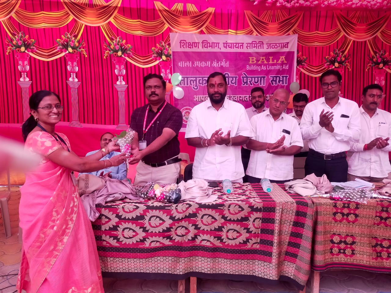 प्रेरणा सभेत जि.प. ममुराबाद शाळेच्या शिक्षिका श्रीमती कल्पना चौधरी यांनी आपल्या शाळेच्या बाला उपक्रमाचे PPTद्वारा उत्कृष्ट सादरीकरण केले म्हणून मान.गटविकास अधिकारी जळगाव व इतर मान्यवरांचे हस्ते सत्कार करण्यात आला.