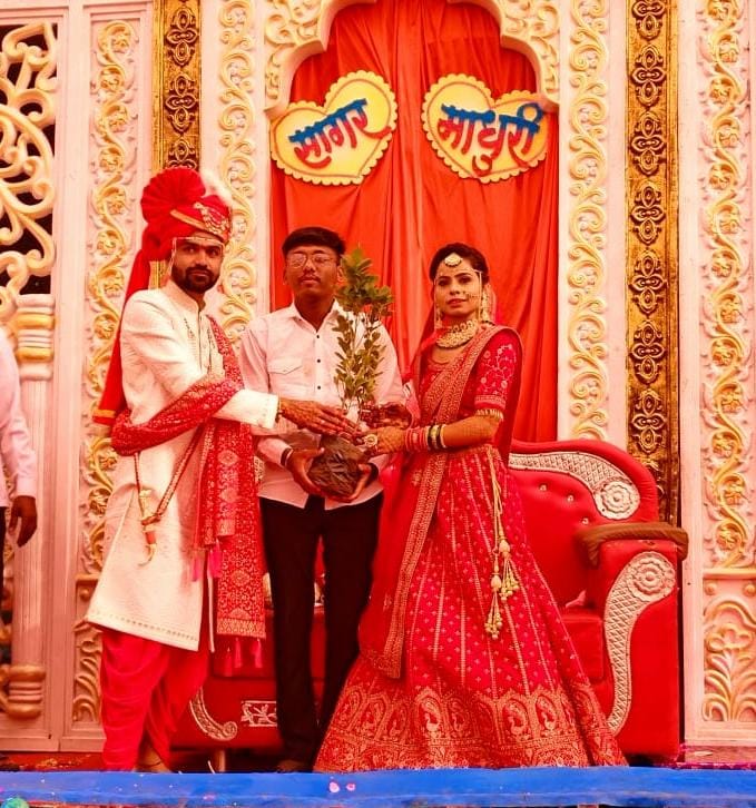 विवाह प्रसंगी भेट वस्तू न देता, वधु, वरास उर्वेश साळुंखे यांच्या कडुन एक झाड भेट….