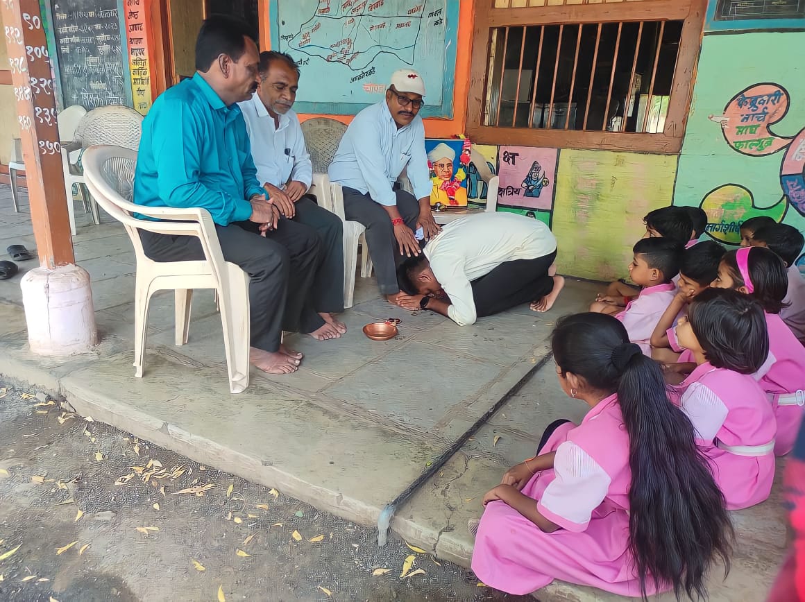 जळगाव – मानवी जन्मात शिक्षकाला एक आदर्श मानले जाते चांगला व्यक्ती घडणाऱ्या मागे शिक्षक याचा मोठा हातभार असतो. या अनुषंगाने शिक्षक दिनानिमित्त राष्ट्रवादी विध्यार्थी काँग्रेस जिल्हा सरचिटणीस उर्वेश साळुंखे यांनी बुधगाव व अनवर्दे जिल्हा परिषदेच्या शाळेत शिक्षकाचा सन्मान म्हणून शिक्षकांचे पायधुन व सत्कार करून एक आदर्श उपक्रम राबवला आहे. या प्रसंगी मुख्याध्यापक रविंद्र पाटील शिक्षक वासुदेव नन्नवरे, भूपेंद्र महाजन व विद्यार्थी उपस्थित होते.