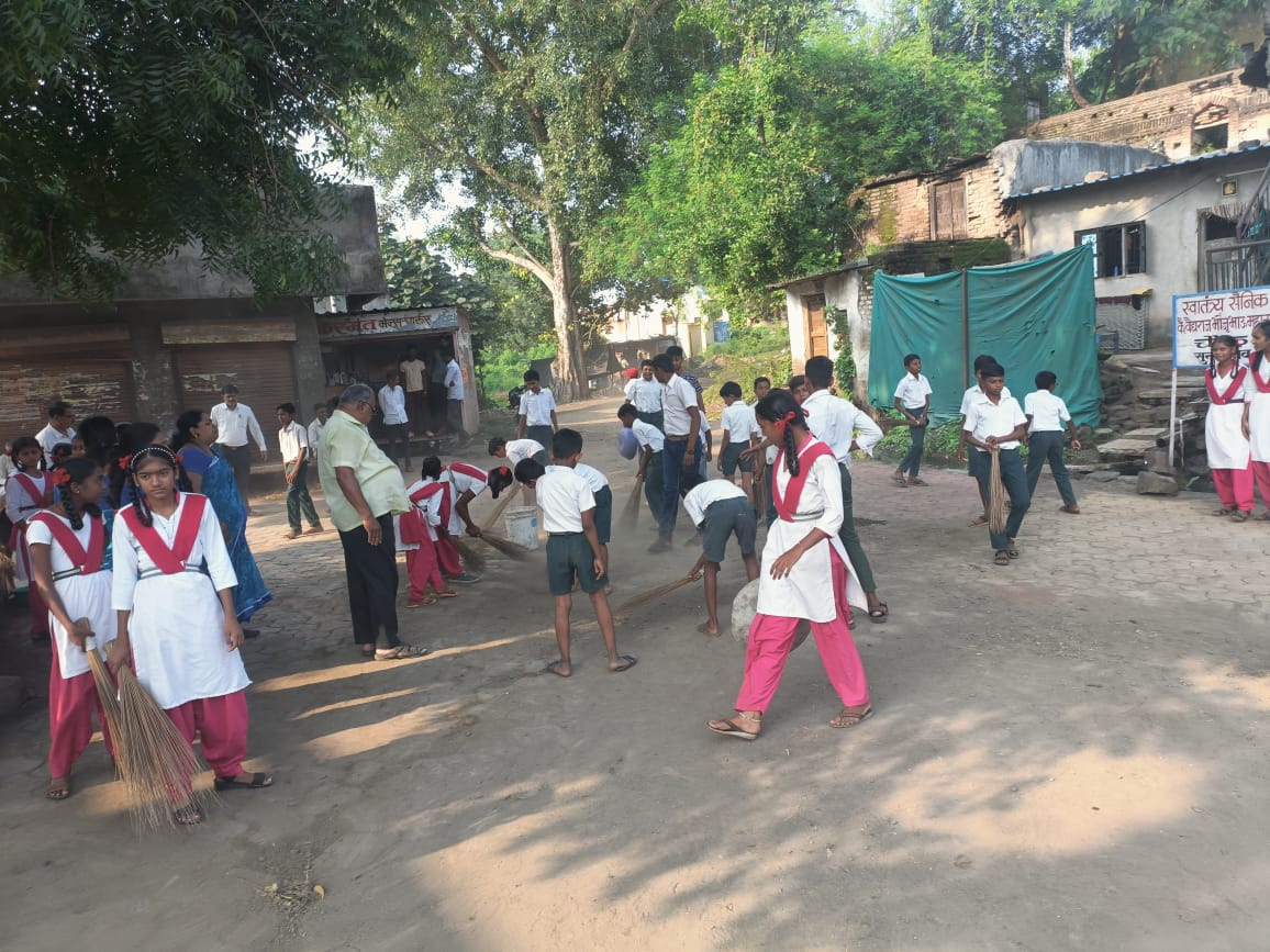 भुसावळ – येथील दादासाहेब दामू पांडू पाटील माध्यमिक विद्यालयाच्या विद्यार्थ्यांनी सकाळी शाळेपासून तर गावातील मुख्य चौका पर्यंत साफसफाई केली तसेच रस्त्याने असलेले गवत व घाण काढून फेकली. विशेष म्हणजे अनेक दिवसांपासून येथील चौकाची साफसफाई झालेली नव्हती या निमित्ताने गावातील चौक साफसफाई करुन स्वच्छ करण्यात आला. दि. १ आॅक्टोबर रोजी सकाळी सर्व देशात साफसफाई करण्याचे आवाहन करण्यात आले आहे मात्र १ रोजी रविवार असून शाळांना सुट्टी असल्याने विद्यार्थ्यांनी शनिवारी साफसफाई केल्याचे सांगितले जात आहे. यावेळी दादासाहेब दामू पांडू पाटील माध्यमिक विद्यालयाचे शिक्षक वृंद व विद्यार्थ्यांचे गावातील ग्रामस्थांनी आभार मानले आहेत.