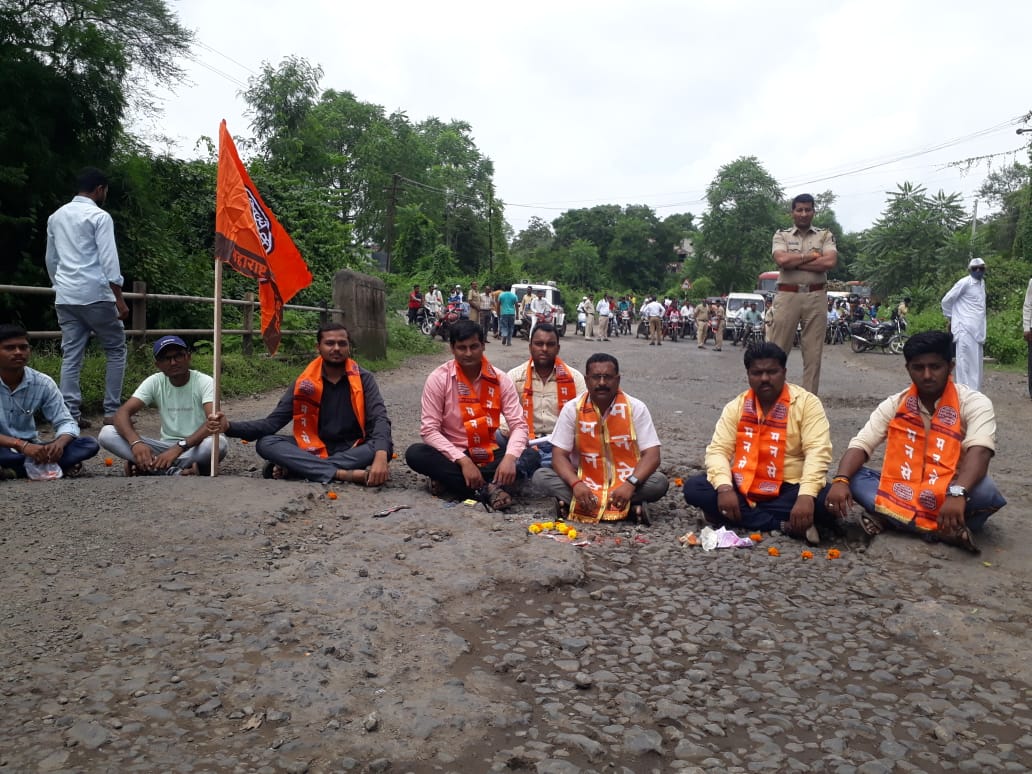 यावल ते चोपडा या बुऱ्हाणपुर अंकलेश्वर या मार्गावर नेहमीच मोठया प्रमाणावर वाहनांच्या वर्दळीचा असेलला हा महामार्ग खड्डेमय झालेला आहे. या खड्यांमध्ये पावसाळ्याचे पाणी मोठया प्रमाणावर साचत असून, वाहन चालकांना वाहनचालवितांना या वेळी या रस्त्याचा अंदाज येत नसल्याने या ठीकाणी मोठा अपघात होवुन जिवीतहानी होण्याची शक्यता नाकारता येत नाही. असावेळी दुर्दैवाने एखाद्याचा यात नाहक निरपराध व्याक्तीचा बळी जात असेल तर शासनाच्या अशा गलथान कारभाराचा तसेच खड्यांचा व यावलच्या सार्वजनिक बांधकाम विभागाचा निषेध करण्यासाठी महाराष्ट्र नवनिर्माण सेनेच्या माध्यमातुन आंदोलन करण्यात आले. यावेळी महाराष्ट्र नवनिर्माण सेनेच्या वतीने महामार्गावरील खड्ड्यांमध्ये बसुन पूजा करून त्याचे श्राद्ध घालण्यात आले. यावेळी सार्वजनिक बांधकाम विभागाच्या माध्यमातुन तात्काळ हे खड्डे बुजविण्यात न आल्यास तीव्र आंदोलन छेडण्यात येईल असा इशारा रावेर लोकसभा क्षेत्राचे जिल्हाध्यक्ष जनहीत चेतन अढळकर यांनी दिला आहे. याप्रसंगी तालुका उपाध्यक्ष शाम पवार, शहराध्यक्ष किशोर नन्नवरे, विद्यार्थी सेना गौरव कोळी, विभागाध्यक्ष आबिद कच्छी, विपुल येवले, प्रतिक येवले, राज शिर्के, गणेश माळी, कुणाल बारी, आकाश चोपडे, कमलेश शिर्के आदी सहभागी झाले होते यावेळी महाराष्ट्र नवनिर्माण सेनेव्दारे करण्यात आलेल्या आंदोलनामुळे सुमारे ३५ मिनिट वाहतुक बंद झाल्याने रस्त्याच्या दोघ बाजुला मोठया प्रमाणावर वाहन थांबल्या वाहतुक विस्कळीत झाली होती.